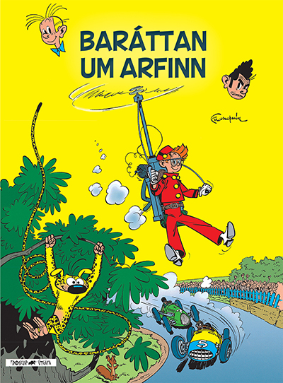 Baráttuna um arfinn er kannski óþarfi að kynna. En loksins prýðir bókin upprunalega kápu. Iðunn bókaútgáfa var í samprent við danska útgáfu og notaði sömu kápu sem Danskur teiknari, Peter Madsen hafði gert. Útlitslega má geta þess að útgáfa Frosks er litríkari, pappírinn betri og svo auðvitað hefur sagan verið þýdd upp á nýtt. Þarna er á ferð bók sem safnarar mega ekki láta fram hjá sér fara og það mun koma síðar í ljós hvers vegna, það er þegar Froskur klárar útgáfu Sval og Val seríuna. Innbundin 62 síður |